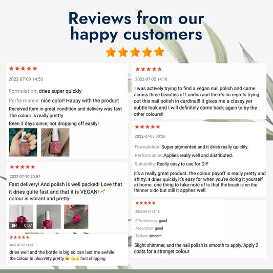 Three Beauties Nail Polish – Vegan & Cruelty Free PETA Certified | 9ml | 24 SHADES