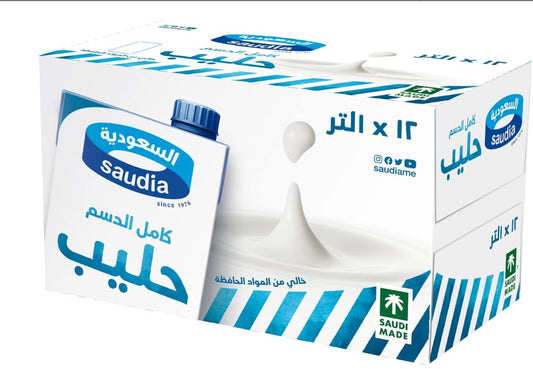 Saudia Whole Milk - 12 x 1 Liter Cartons