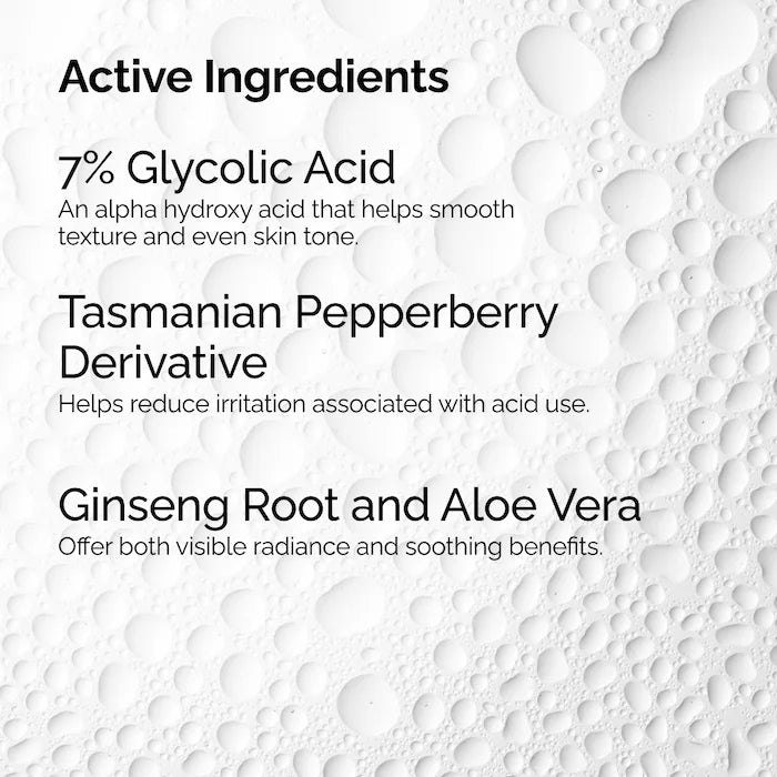 What it is: A daily surface exfoliator that smooths skin texture, evens tone, and boosts luminosity.